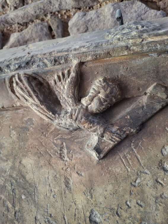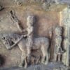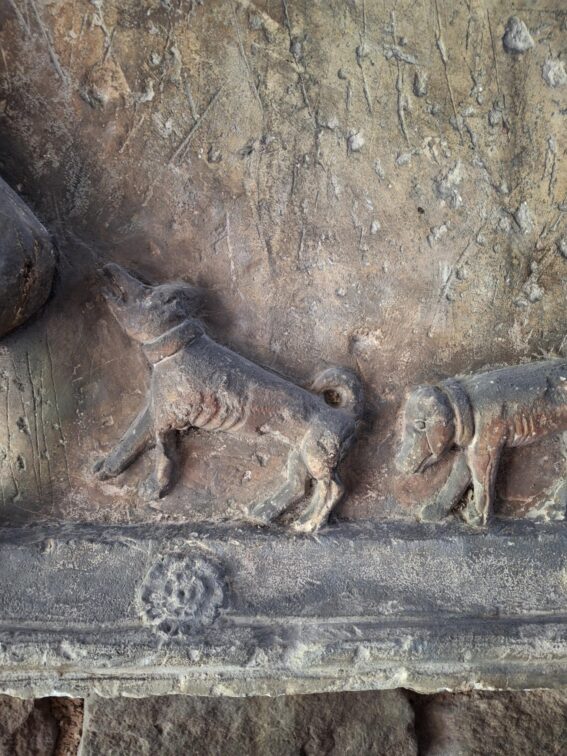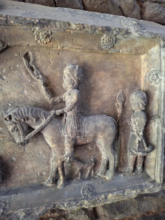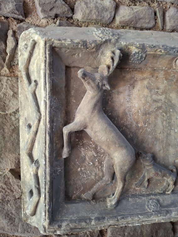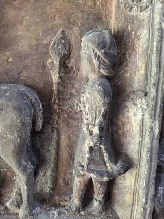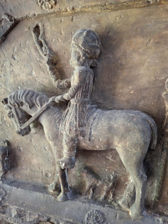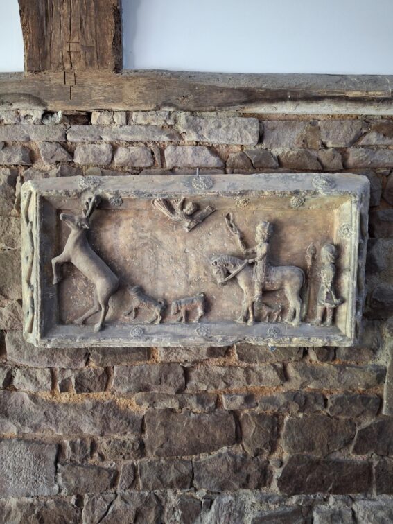 Reliëf in kalksteen; Sint Hubertus op de Jacht.