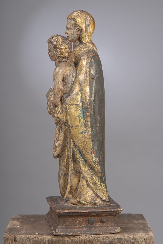 Fraaie sculpture in hout, verguld en gepolychromeerd.